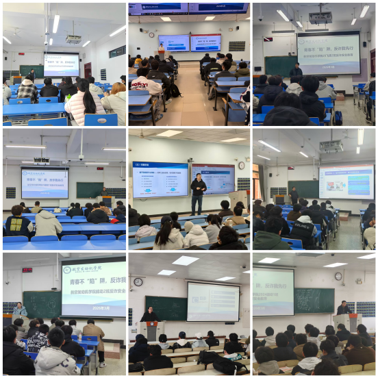 为进一步筑牢航空发动机学院学生的安全防线,提升学生的安全防范意识和自我保护能力,3月10日-3月16日,航空发动机学院各班主任深入班级开展反诈安全教育主题班会,为学生的校园生活与未来发展保驾护航。