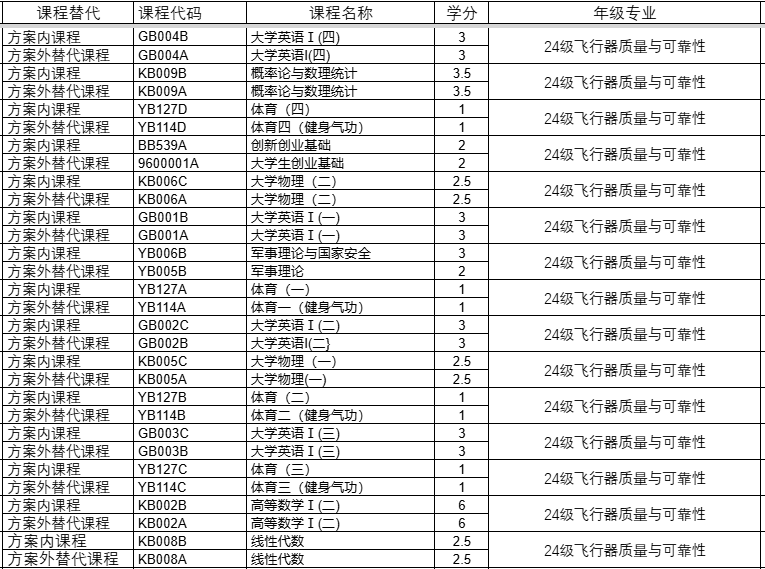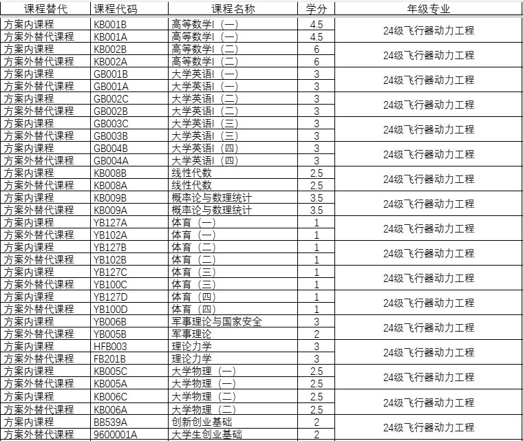 航空发动机学院2025-2026-1学期第8周课程替代公示