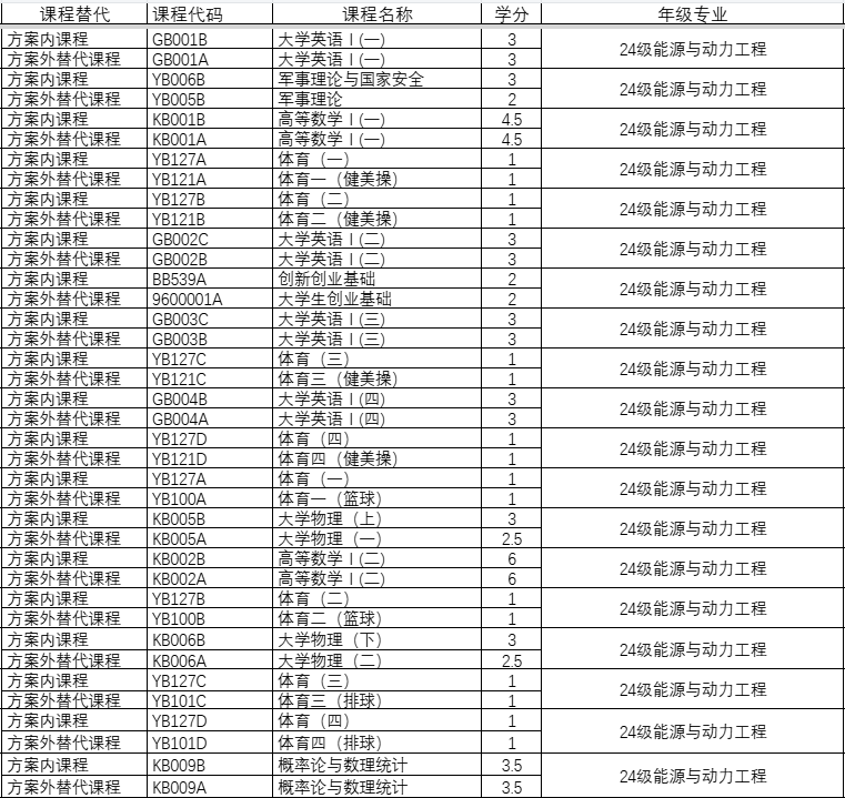 航空发动机学院2025-2026-1学期第4周课程替代公示