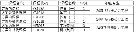 航空发动机学院2025-2026-1学期第19周课程替代公示