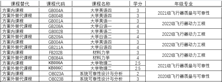 航空发动机学院2025-2026-2学期第5周课程替代公示