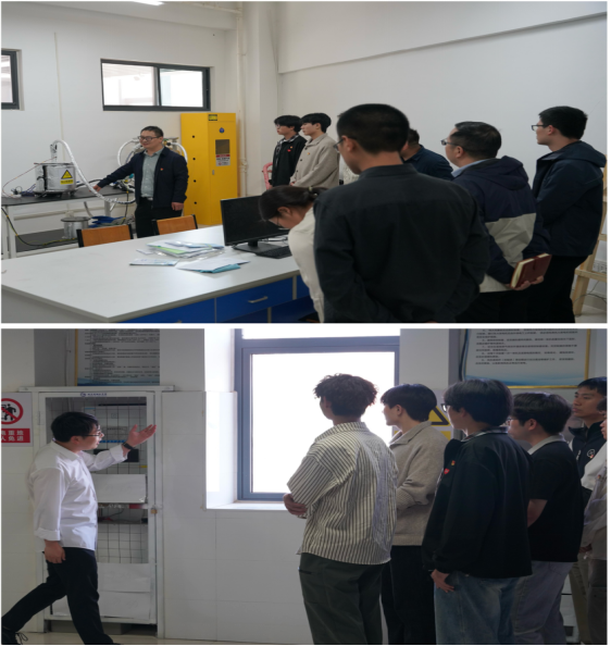 随后,党员们先后走进了动力燃烧测试实验室、零碳能源综合系统实验室,支部老师张贺磊、耿直详细讲解了仪器用途、安全操作规范及相关科研产出,交流环节,对学生现场提问进行详细解答。现场交流让党员们明晰:实验室安全是科研工作的生命线,安全就体现在每一次规范操作、每一处隐患排查的具体行动中。