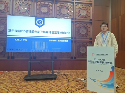 会议期间,我院2023级硕士研究生李兵和2024级硕士研究生于忠未分别作了题为《基于模糊PID算法的电动飞机电池包温度控制研究》和《涵道螺旋桨设计及性能优化研究》的口头报告,并和与会专家进行了相关探讨。